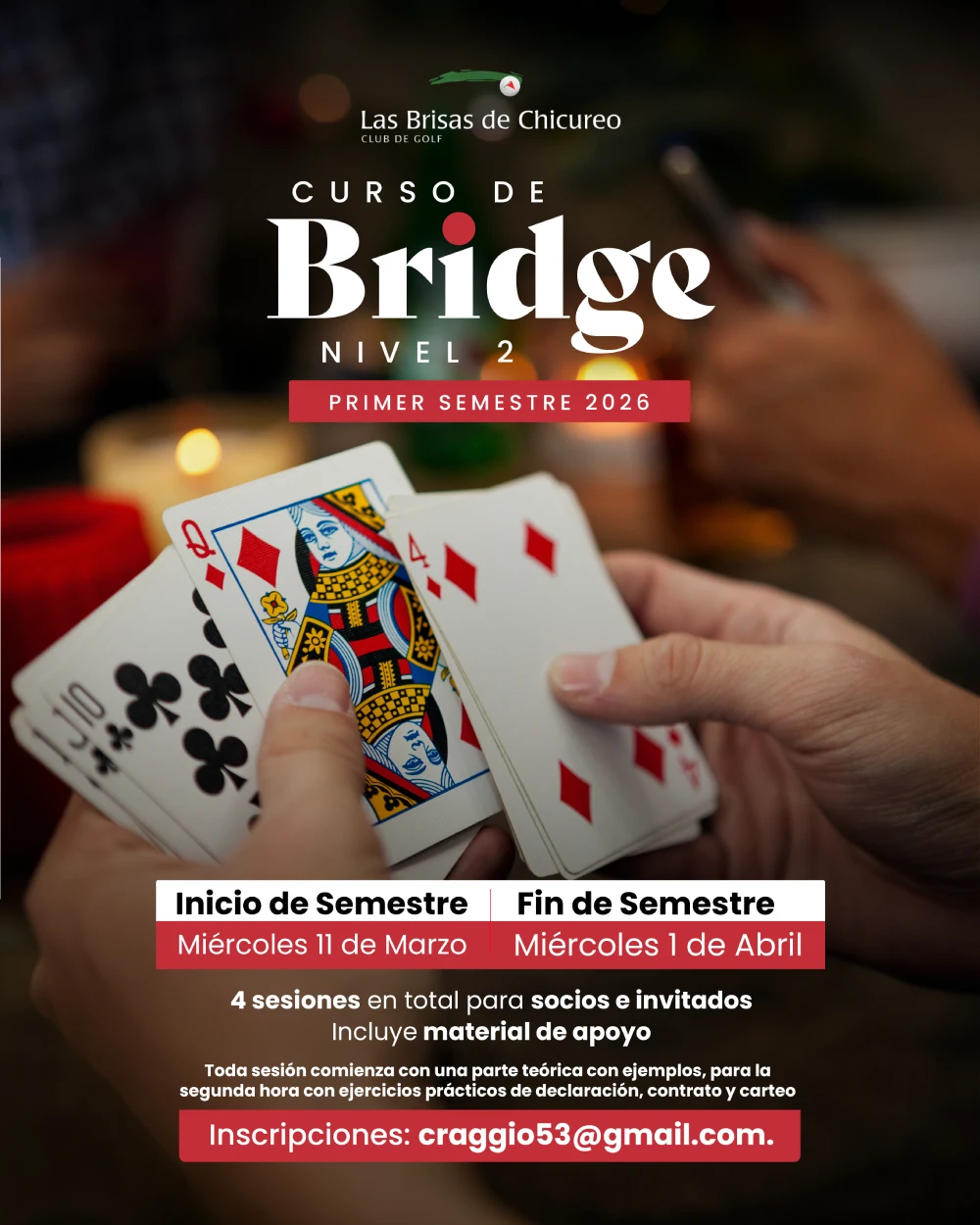 Los invitamos cordialmente a participar en el Curso de Bridge “Nivel 2”, una instancia diseñada para profundizar en las técnicas y estrategias de este apasionante juego.